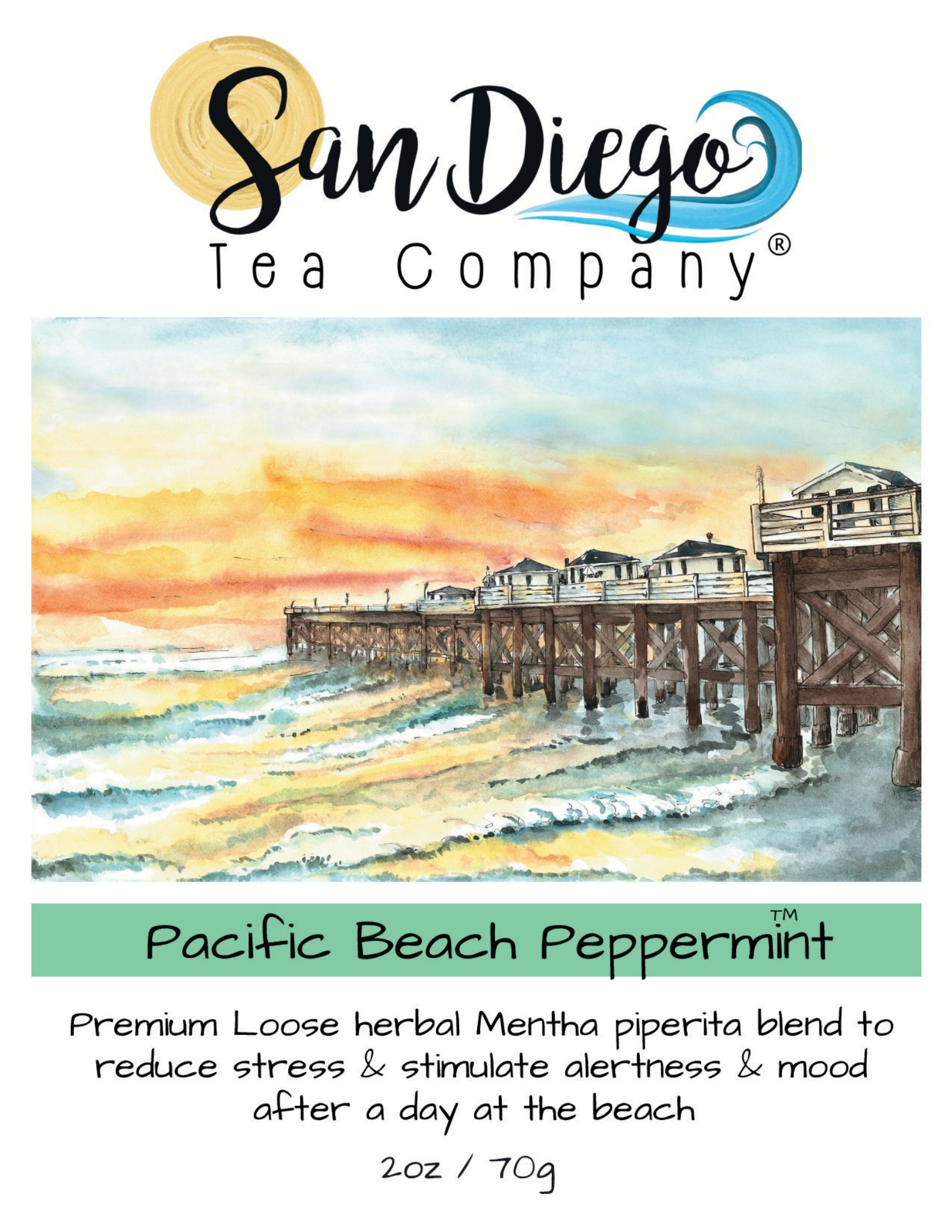 This tea reminds us of that time of day when the sky above Crystal Pier fills with gold and casts a magical glow over this vibrant beach community and everything slows down to enjoy the sunset glow.
